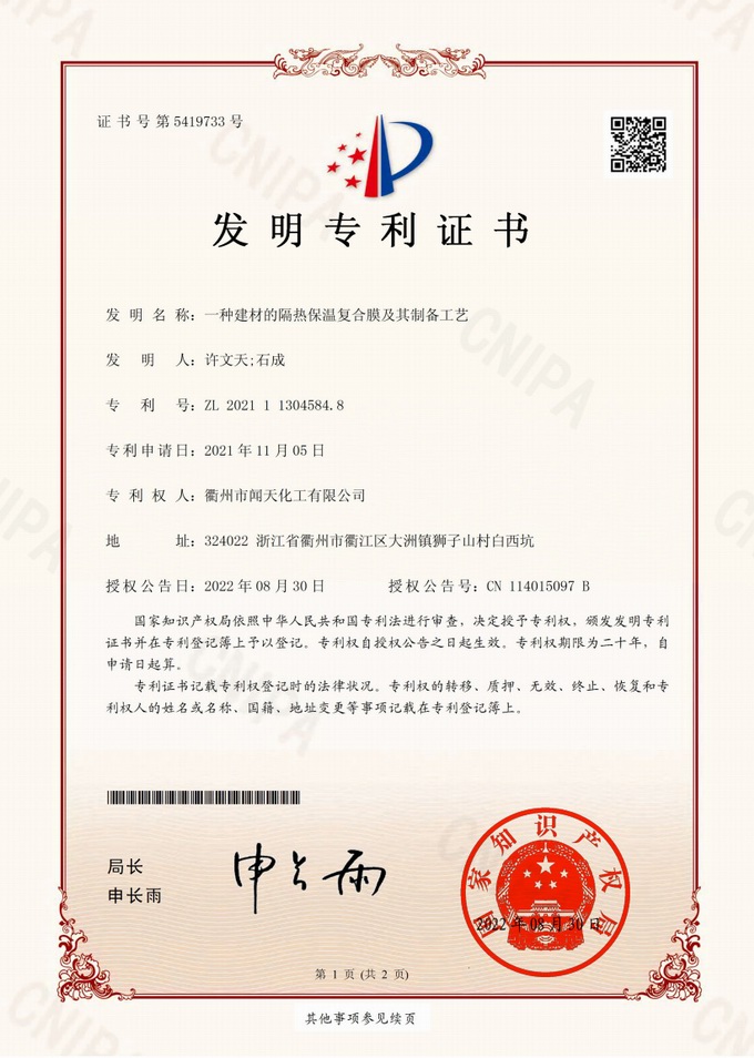 衢州市闻天化工有限公司成立于2003年,是国内研发、生产氟碳涂料的企业。衢州传褀防水防腐工程科技有限公司作为其下属公司,专业承接各类防水防腐项目。企业经过20年的市场磨练,已在钢构防腐领域、建筑屋面和屋面修缮、防水隔热领域、建筑外立面的防水隔热装饰领域及户外竹木防腐领域形成了自己独特的产品体系和个性化解决方案。公司经过多年的努力,已获得了多项国家发明专利和新产品科技成果,并参与了中国建筑材料流通协会组织的《房屋修缮防水工程规范》的编制,中建协涂装委员会浙西工作站设立在我公司。公司的产品有一个共同的特点,就是经久耐用,使用年限超长。钢构防腐的效果是其他材料的三到五倍使用寿命;屋面防水隔热的效果是其他材料的三到五倍的使用寿命;建筑外立面的效果是既防水又隔热保温,既美观又不褪色;户外竹木防腐的效果更是其他材料五倍以上的寿命。